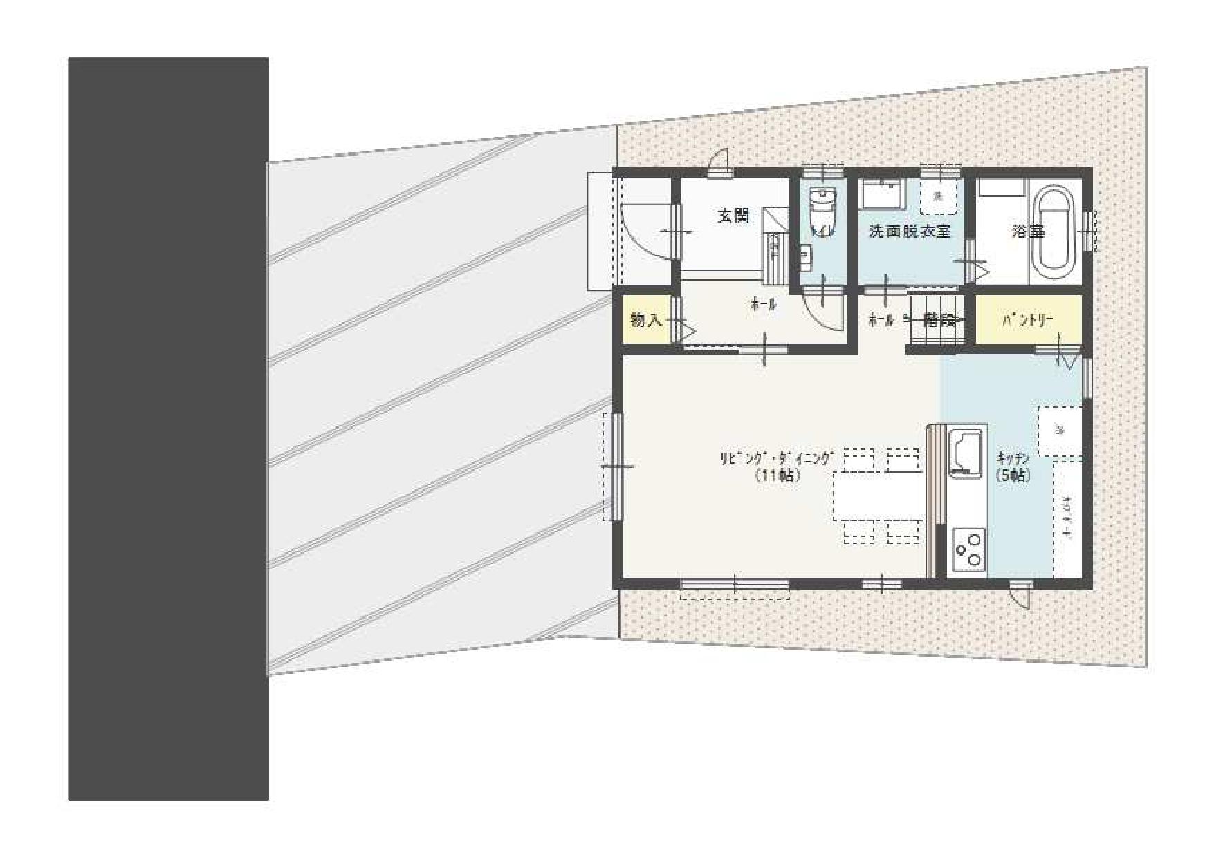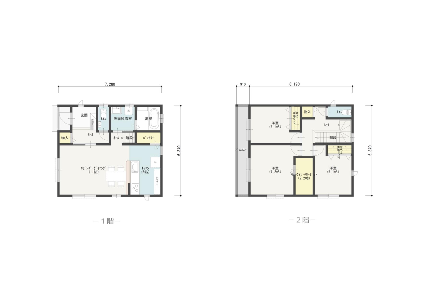 91.08㎡ (約27.55坪) 建物面積1階44.71㎡、建物面積2階46.37㎡