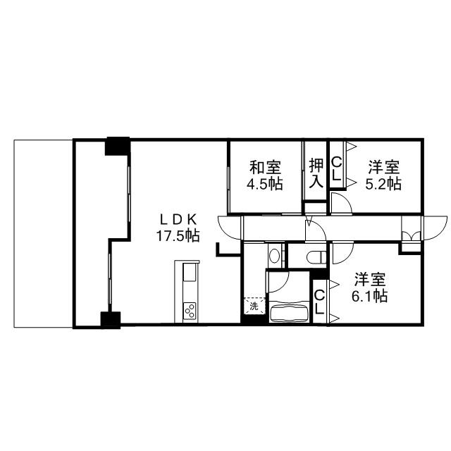 3LDK 和室4.5帖/洋室6.1帖/洋室5.2帖/LDK17.5帖