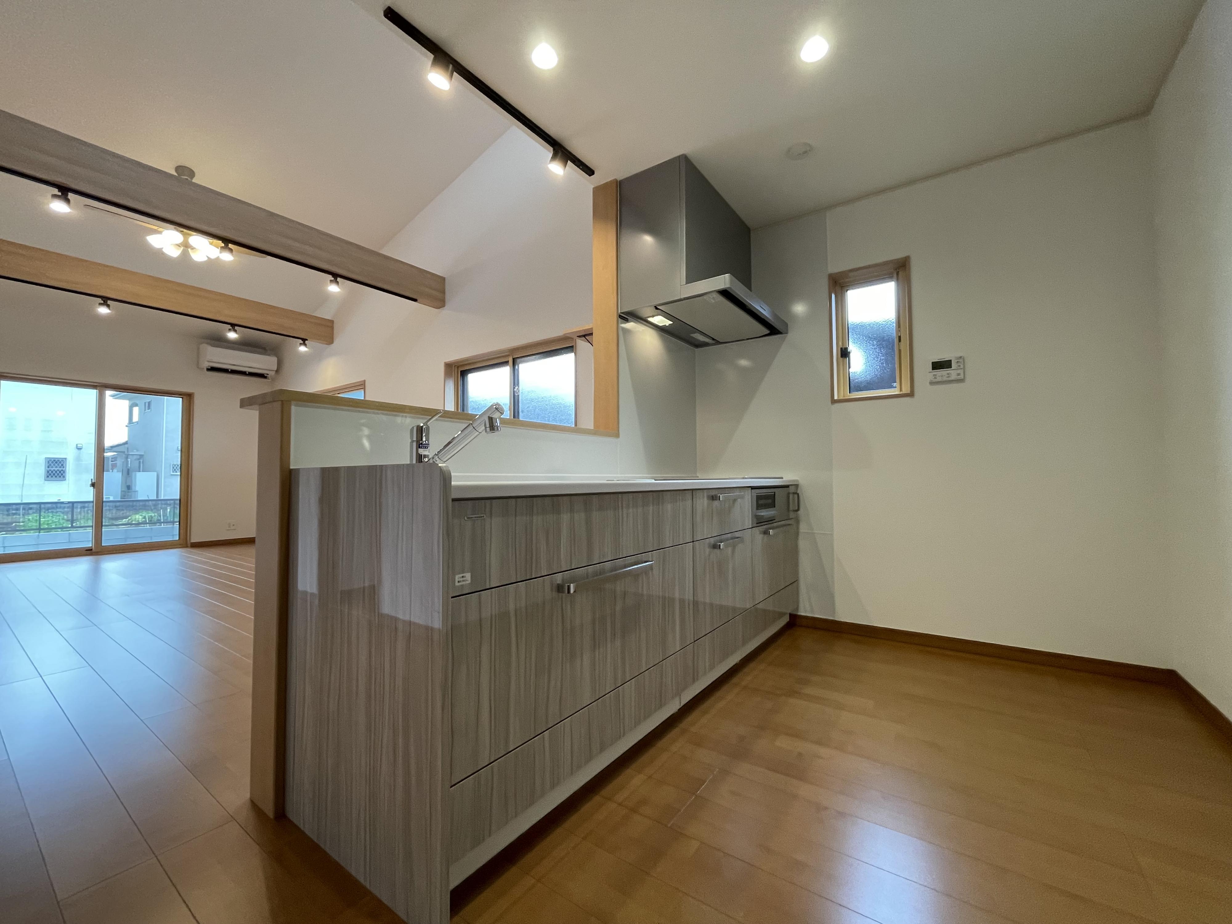 トイレ2ヶ所、温水洗浄便座、バス・トイレ別、追焚機能、シャワー、浴室乾燥機、浴室暖房、浴室1坪以上、洗面所、洗面台、シャワー付洗面化粧台、システムキッチン、カウンターキッチン、IHクッキングヒーター、グリル、浄水器、収納スペース、全居室収納、クローゼット、エアコン2台以上、24時間換気システム、室内洗濯機置場、フローリング、全居室フローリング、クッションフロア、複層ガラス、雨戸、シャッター、照明器具、人感センサー付照明、ダウンライト、モニター付インターホン、ダブルロックドア、ディンプルキー、火災報知器(報知器)、電気、上水道、下水道、側溝、給湯、オール電化