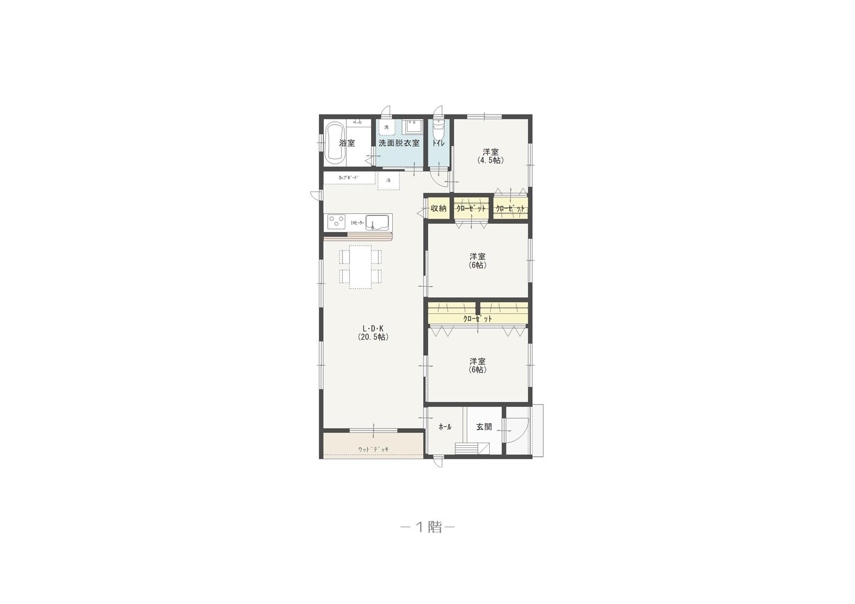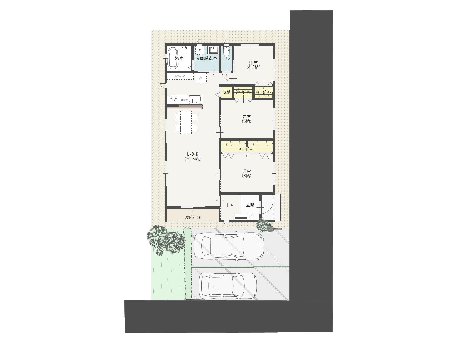 3LDK 洋室4.5帖/洋室6帖/洋室6帖/LDK20.5帖