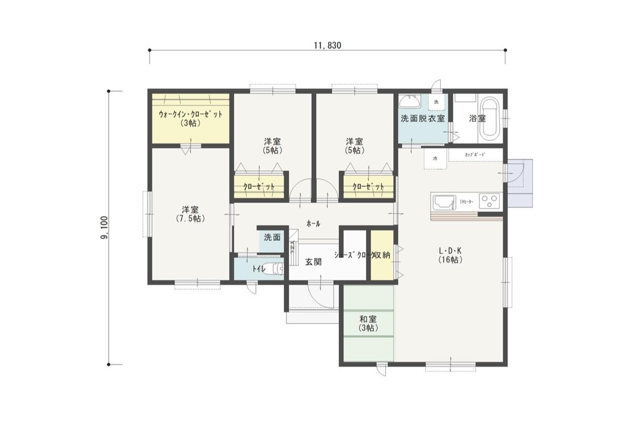 3LDK 洋室5帖/洋室5帖/洋室7.5帖/LDK16帖