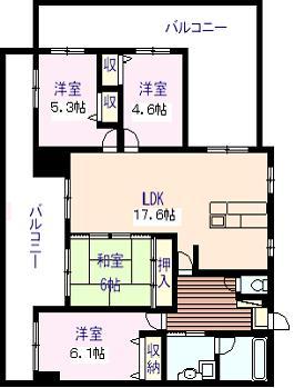 4LDK 和室6帖/洋室6.1帖/洋室5.3帖/洋室4.6帖/LDK17.6帖
