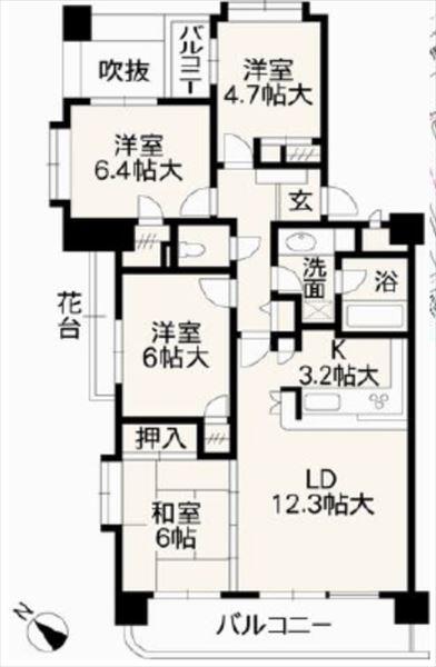 4LDK 和室6帖/洋室6.4帖/洋室6帖/洋室4.7帖/LDK15.5帖