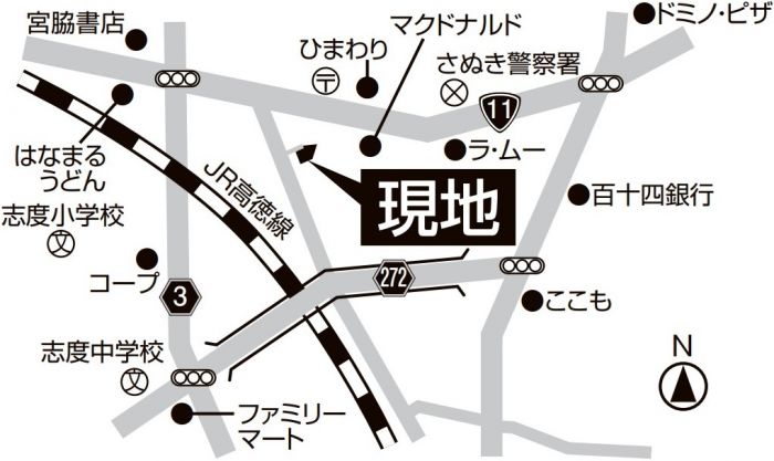 高徳線志度駅 徒歩9分 駅までmap