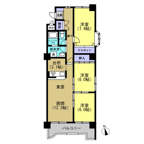 バルコニー有 9.44㎡ 主要採光面:南