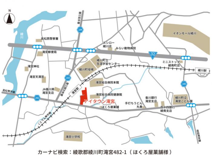 高松琴平電鉄琴平線滝宮駅 徒歩3分 琴参バス新町停 徒歩1分 駅までmap