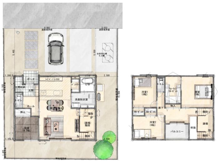 123.95㎡ (約37.49坪) 建物面積1階64.78㎡、建物面積2階59.17㎡