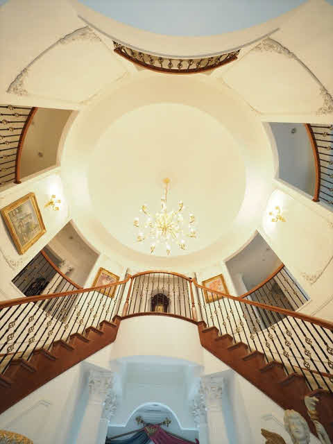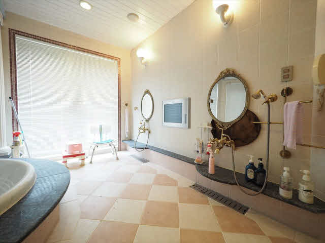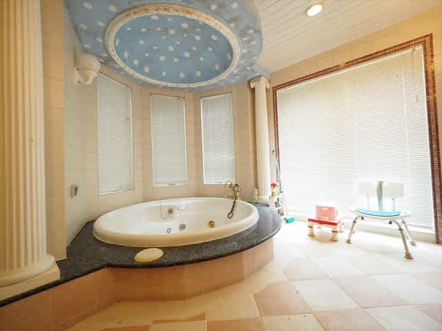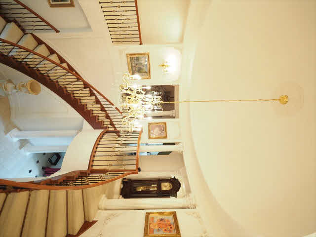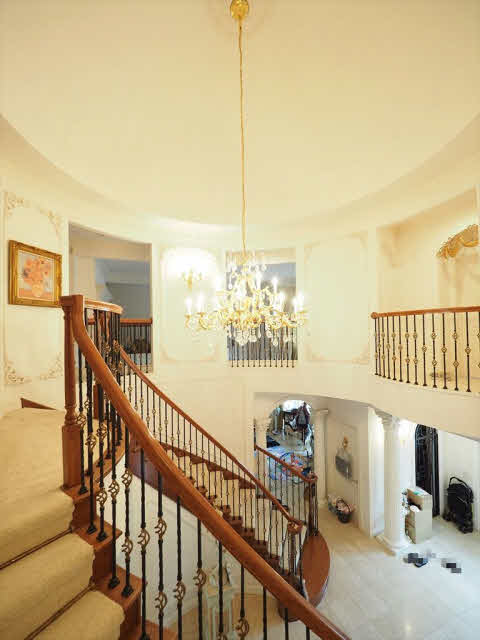 映画のセットではありません。らせん階段のある15帖の玄関ホールは圧巻です。吹き抜けのある48帖のLDKは開放的です。31帖のシアタールームは防音設備バッチリです。1階の8.4帖のバス2階にもバス、トイレは4ヶ所あり、エレベーターあり。水屋、前室、坪庭付の和室の続き間ではお茶席ができます。ロフトは16帖。別棟の建物は延べ110.97㎡(33.56坪)木造築年2005年7月間取1階7.5洋、洗面トイレ3.4帖、LDK13.8帖、2階5.7洋、7.2洋です。