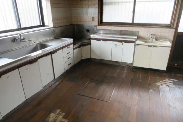 塀の一部を壊せば、駐車5~6台可! 1階の床(フローリング)と水廻り(トイレ、洗面所、浴室)は修理が必要です。