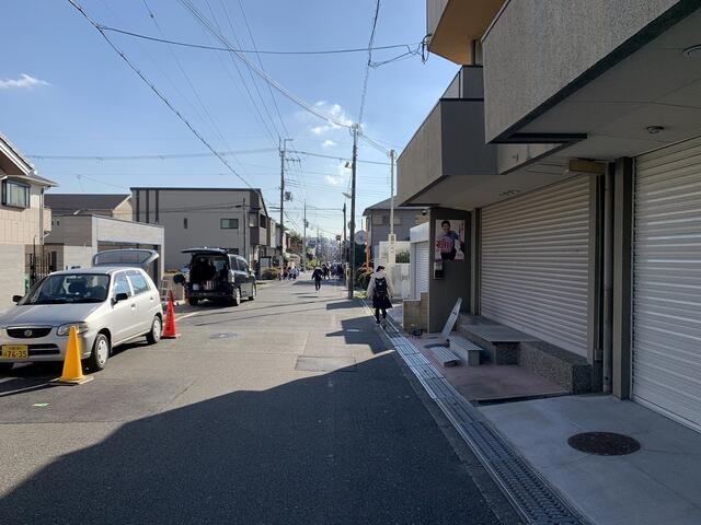 阪急牧落駅徒歩1分の1階店舗。前アパレルショップ。トイレ・照明器具・エアコン・シンク・電動シャッター等残置物多数。業種等何でもご相談ください。