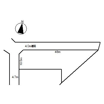 【角地】 西 幅:4.7m 公道 接面:10.5m 舗装有/北 幅:4m 公道 接面:48m 舗装有